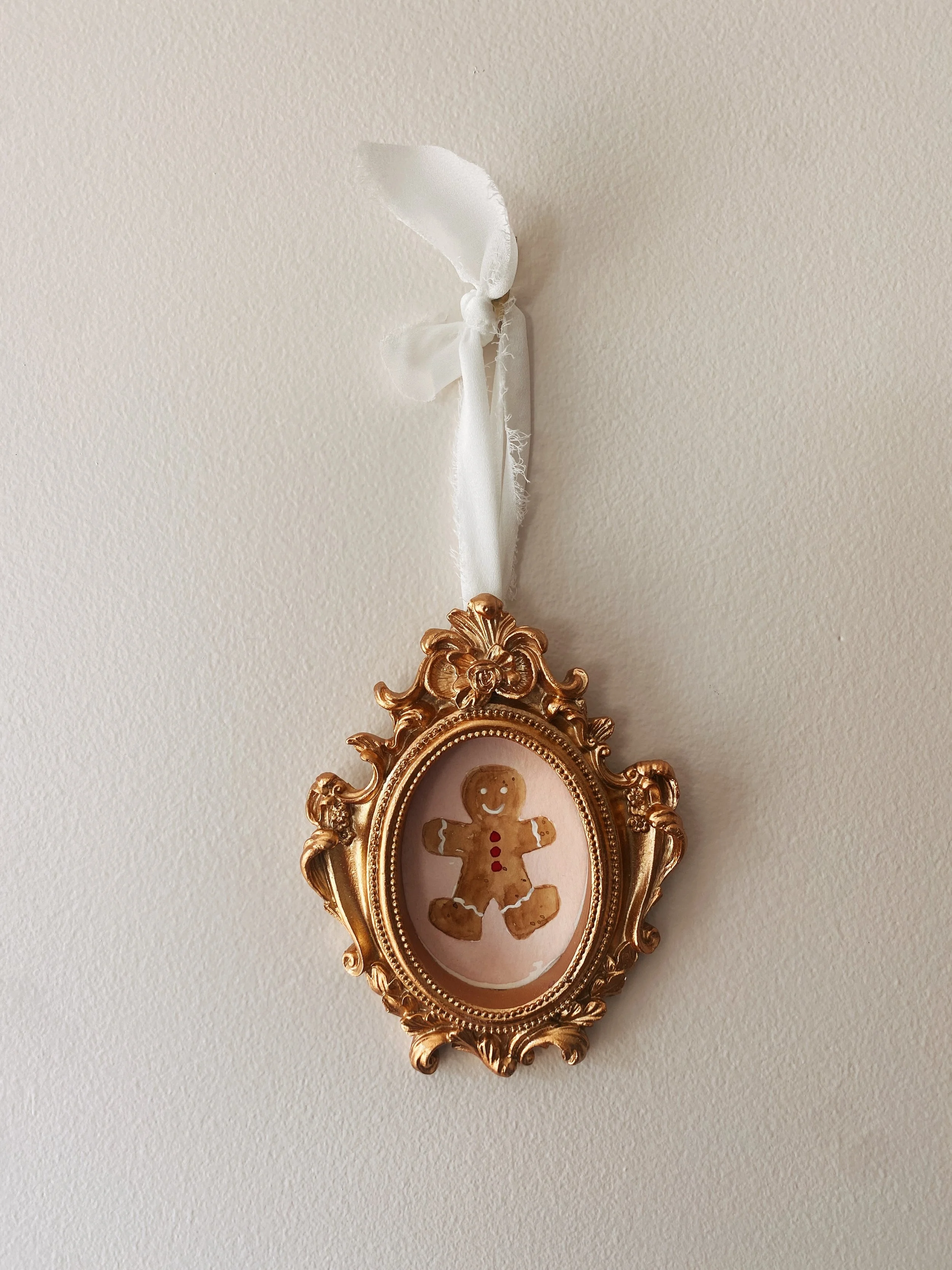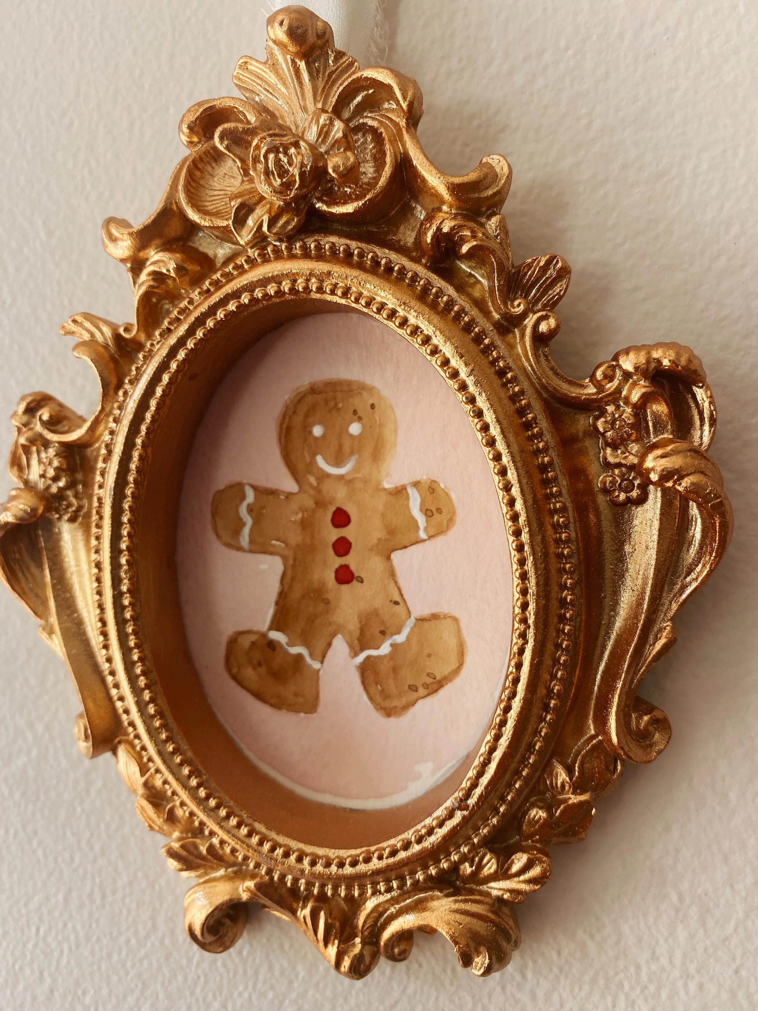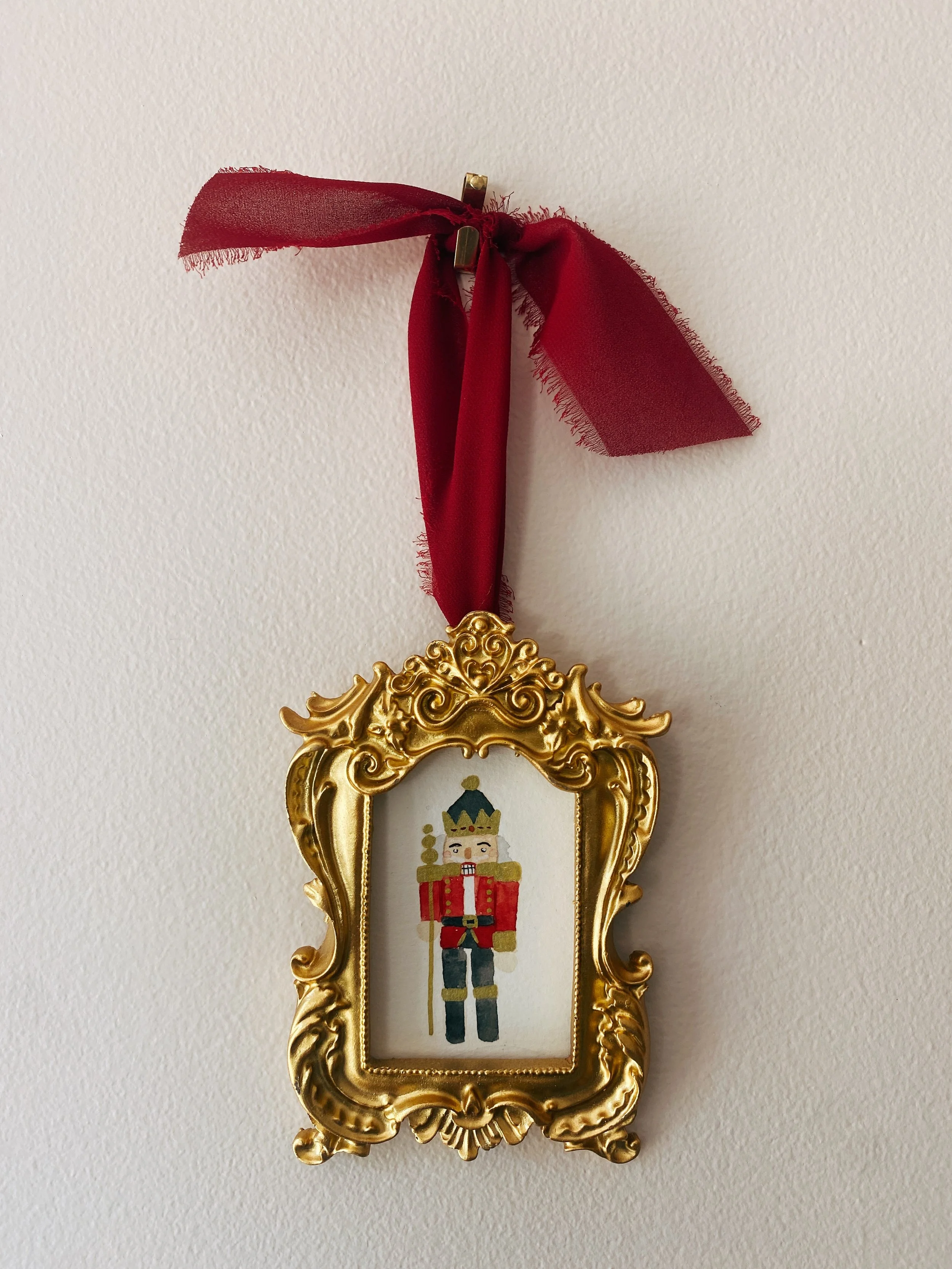 Our gold framed ornaments are intended to lend beauty and charm to the home, providing a vintage note to your holiday celebrations. Handcrafted with watercolors and an ornate gold frame, these pieces lend an artistic touch to gifting, whilst offering elegance and individuality to home decor.